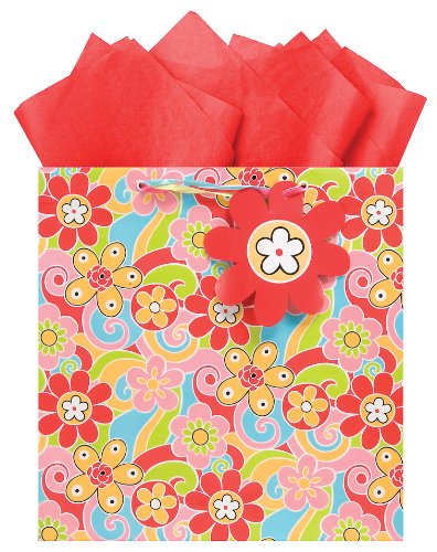 The Gift Wrap Company Florapalooza Large Square Gift Bag with Multi-Ribbon Handle, 12.34-Inches Tall, 12-Count Packages Review