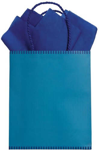 The Gift Wrap Company Mediterranean Ocean Two Tone Medium Kraft Gift Bag, 8.5-Inches Tall, 12-Count Packages Feature