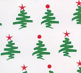 - Design: Clear cellophane wrap with green outlined Christmas trees with red stars